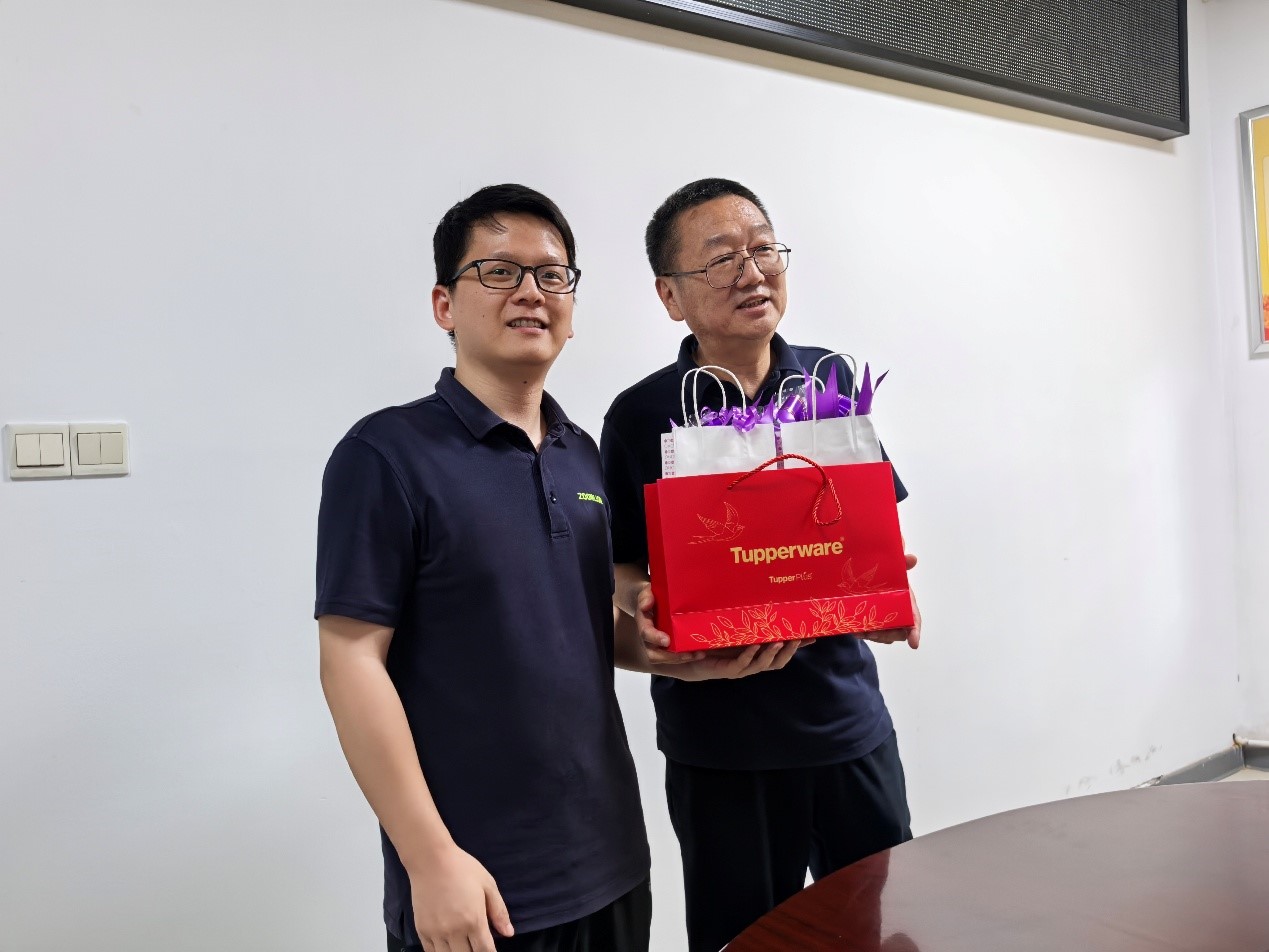 最后,特力液壓技術(shù)分工會主席周磊為劉軍同志送上了精心準(zhǔn)備的退休紀念品 ——一對滿載公司與同事之前溫情的保溫杯,并與劉軍同志合影留念,將這一溫馨時刻永久定格。